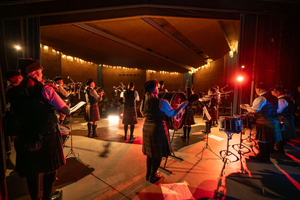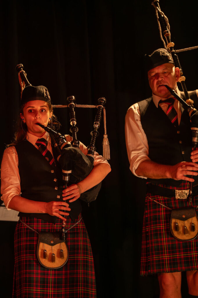 Nach den Konzerten mit Andre Rieu war es für uns nicht ganz neu, allerdings waren die Arrangements vom Dirigenten Russell Harris doch etwas anspruchsvoller zu spielen. Zum Glück hatten wir Brian dabei der uns und die drei schottischen Gastspielerinnen von „Skirl Power“ begleitet hat. Er war auch das Highlight der Show mit seinem Solo bei der „Scottish Overture“ von Patrick Doyle. Eine Komposition in der Spieler nicht nur das Instrument wechseln muss, (B-Flatt zu A-Dur) sondern auch während des Auftritts die Löcher für das C und F mit „Tape“ anpassen muss. Eine Meisterleistung die nur ein so erfahrener Spieler wie Brian, in dieser Perfektion hinbekommen konnte. Wir spielten dann traditionelle Stücke wie „Highland Cathedral und Auld Lange Syne“ mit dem Orchester. Wir danke den Organisatoren und vor allem Richard Morrison und Russel für das Vertrauen und die Chance spielen zu dürfen. Für das kommende Jahr ist bereits eine Wiederholung des Konzerts geplant.Brian Lamond and the New Scottish Sinfonia